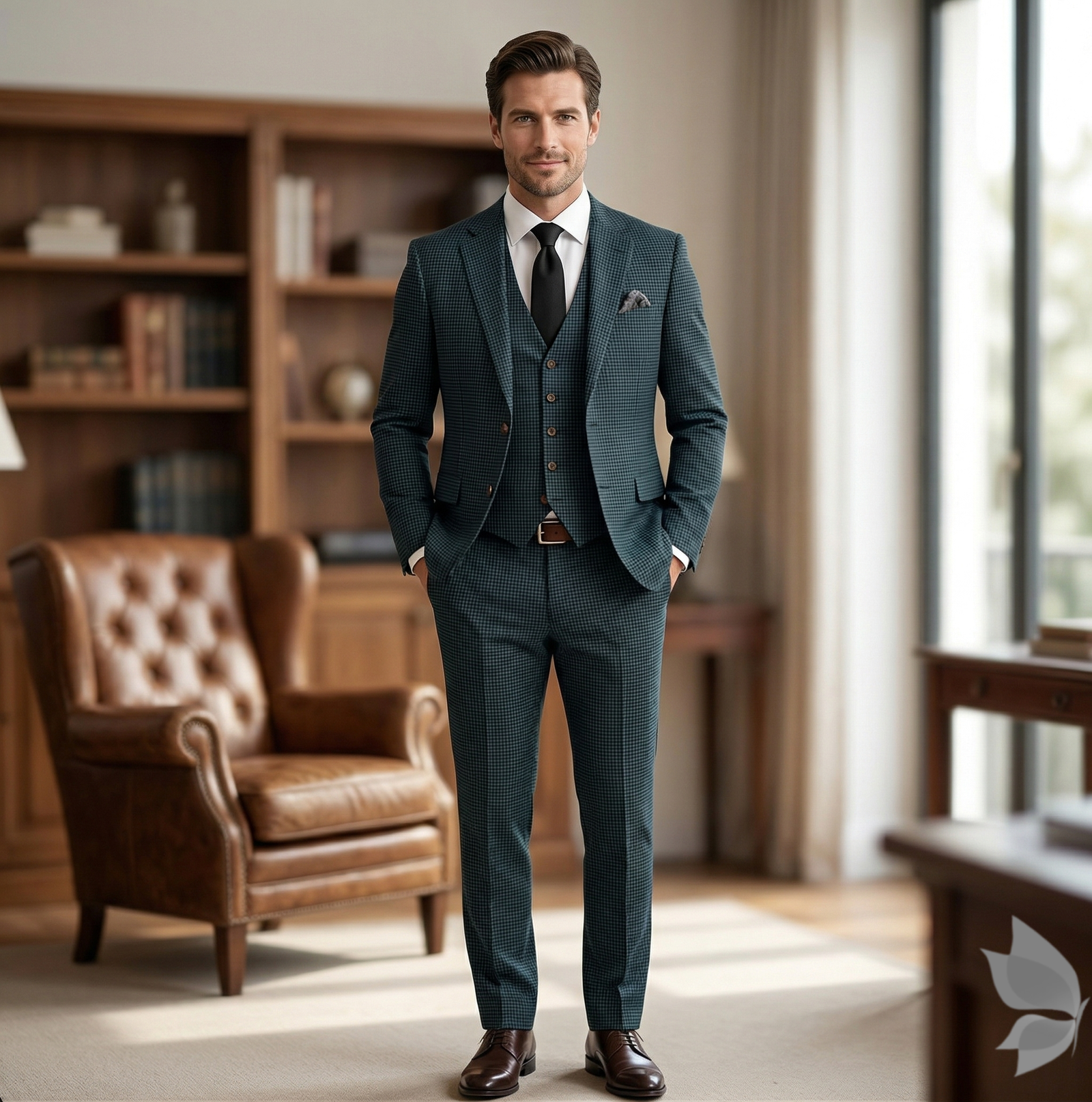 Raymond super 100s wool blended imola with fine luxurious fabric green checkered unstitched suit fabric with length 3.25 metres / VV6846