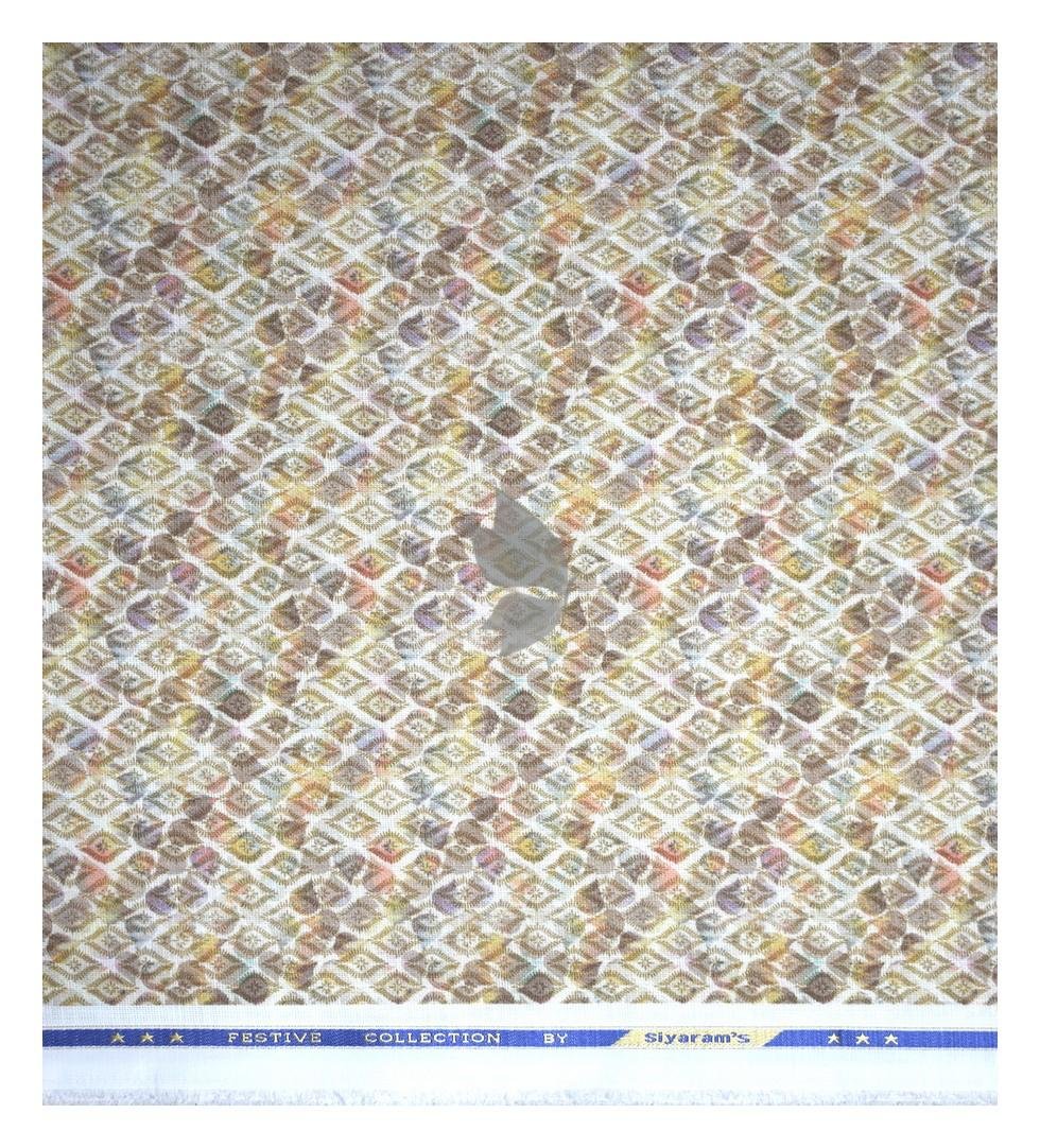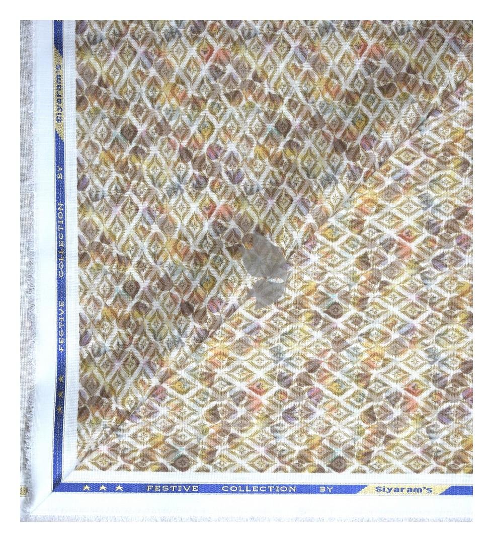 Siyarams festive collection printed pattern with hemp blended Gold (Amber) color unstitched men's Kurta / sherwani / top fabric of 2 meters / VV2305
