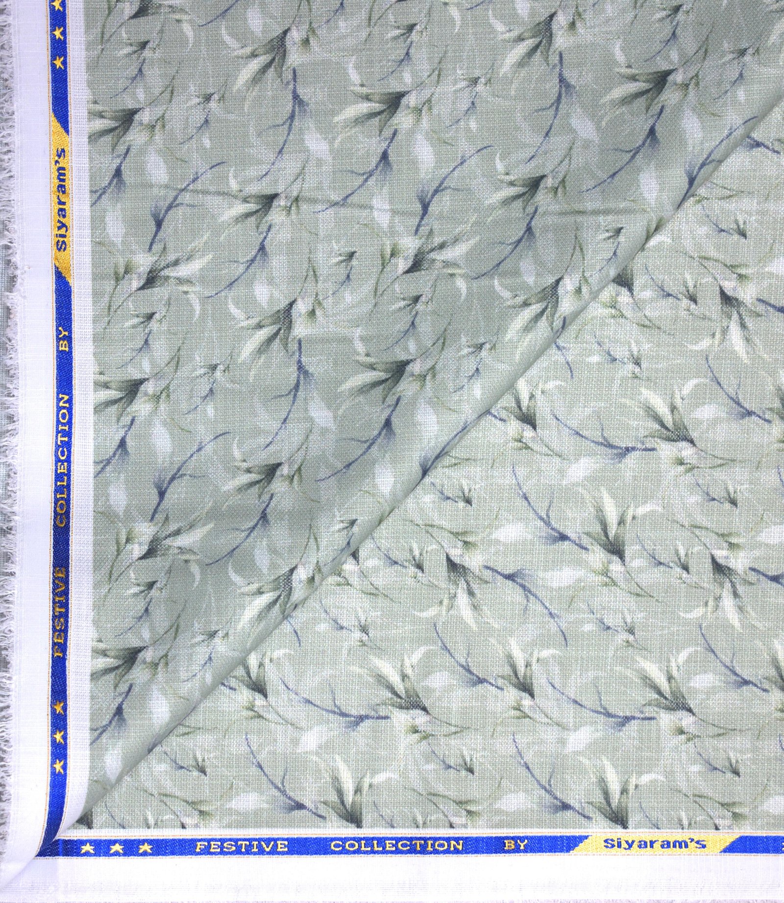 Siyarams festive collection printed pattern with hemp blended Green (Celadon) color unstitched men's Kurta / sherwani / top fabric of 2 meters / VV2303
