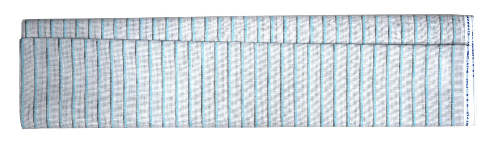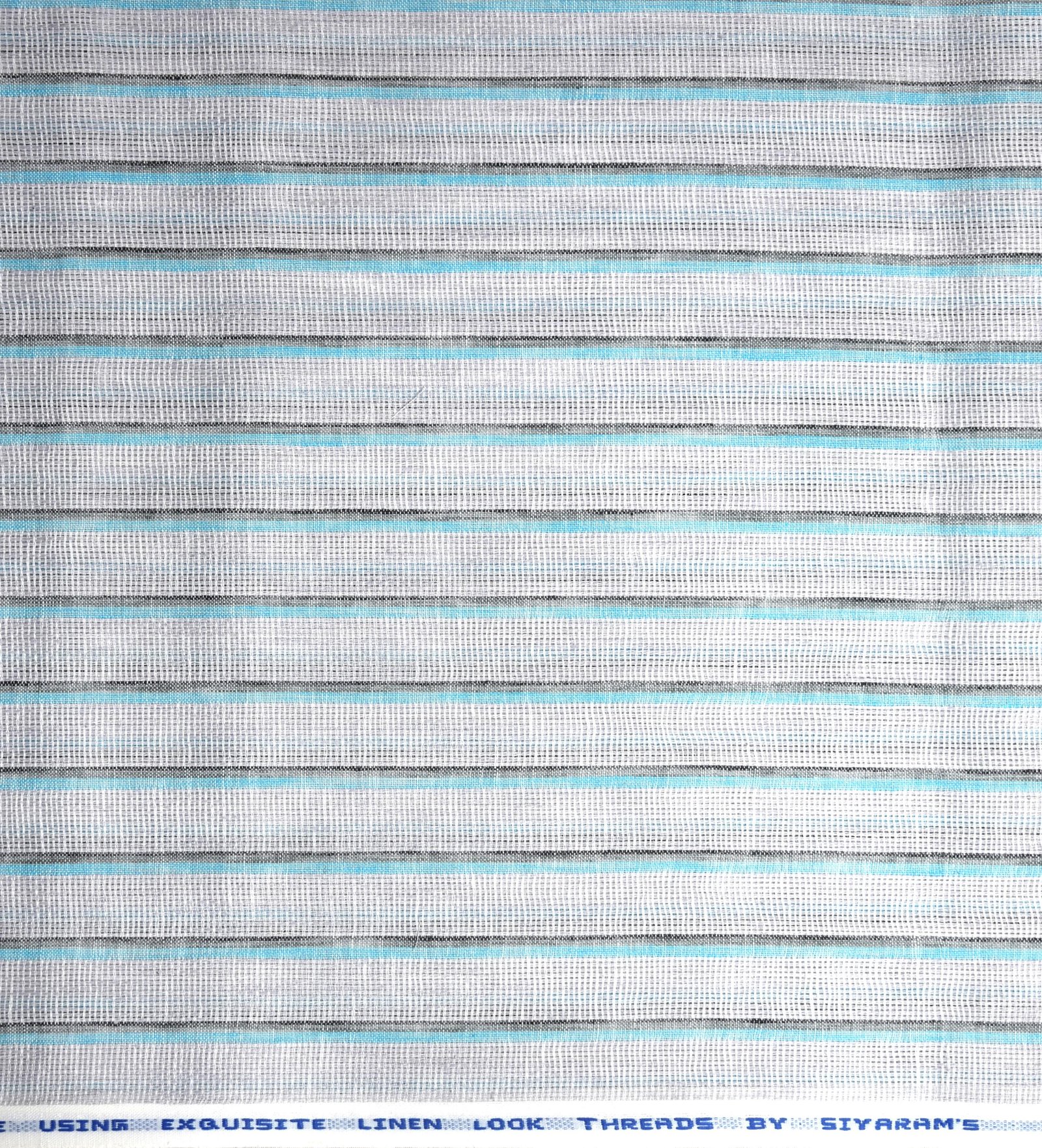 Siyaram's Linen with Cotton Jute Blue color Striped Unstitched Shirt Fabric - 1.60 Mts / VV2178
